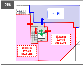 | 募集区画・面積 | 2F②:41.4坪 2F③:63.3坪 |