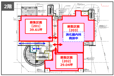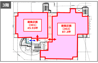 | 賃料(共益・管理費) | 201:631,780円(税込) 坪あたり13,500円・共益費1,000円 202:463,188円(税込) 坪あたり13,500円・共益費1,000円 301:732,584円(税込) 坪あたり13,500円・共益費1,000円 302:1,302,435円(税込) 坪あたり13,500円・共益費1,000円 |